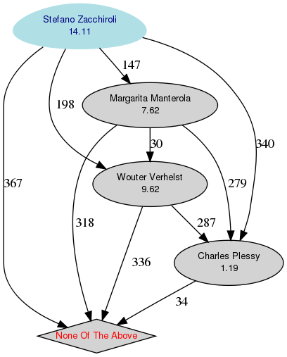 - Option 4 defeats Option 2 by ( 207 - 177) = 30 votes.